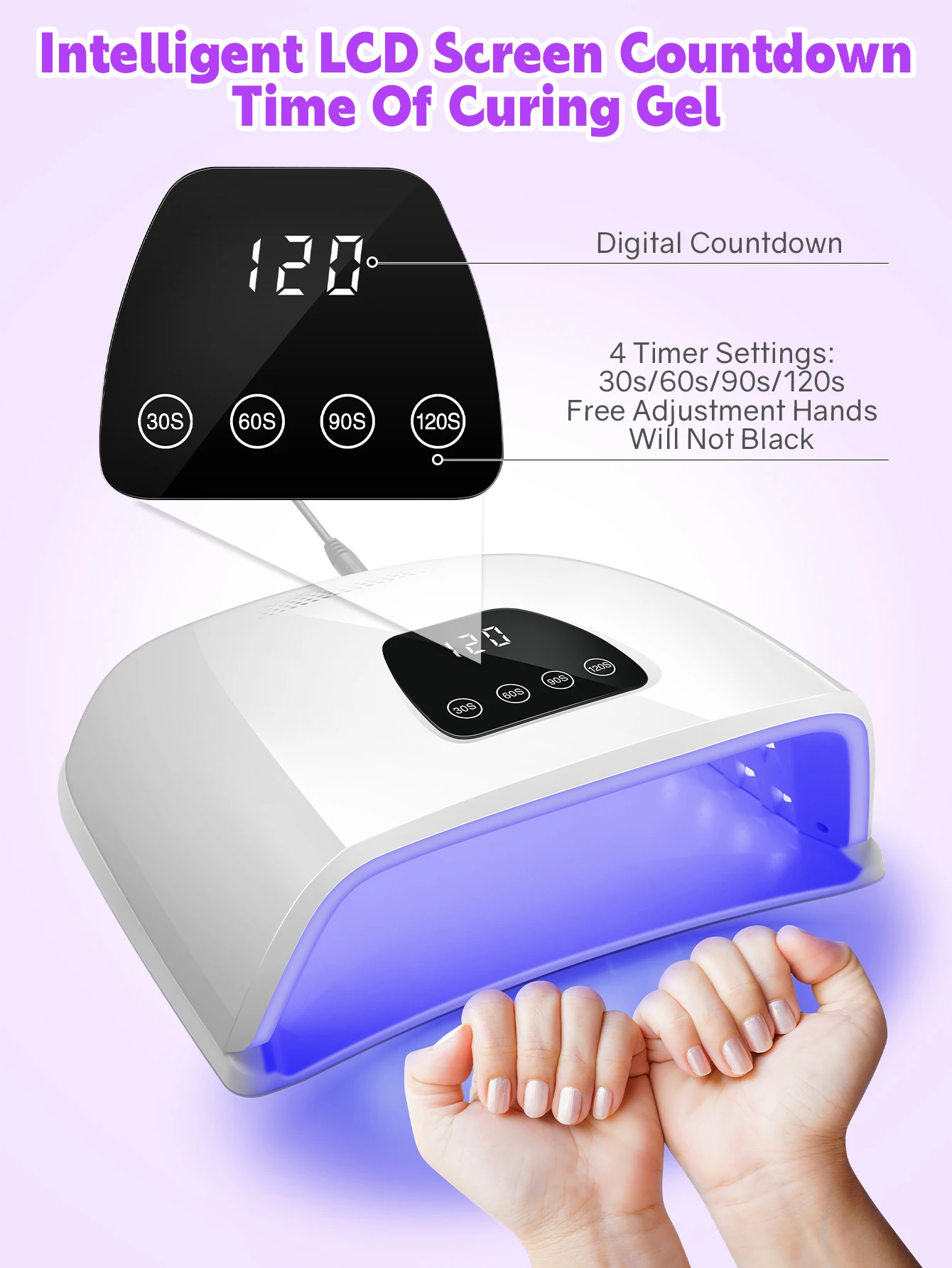 【Digital LCD Touch Display Screen and 4 Timer Setting】 4 timer setting(30/60/90/120S) can show your usage time on a large Digital LCD screen,makes your curing process more visible. The UV lamp can follow your different gel Polish requirements. The upgraded touch screen has a longer service life. Ideal for both home and salon use.