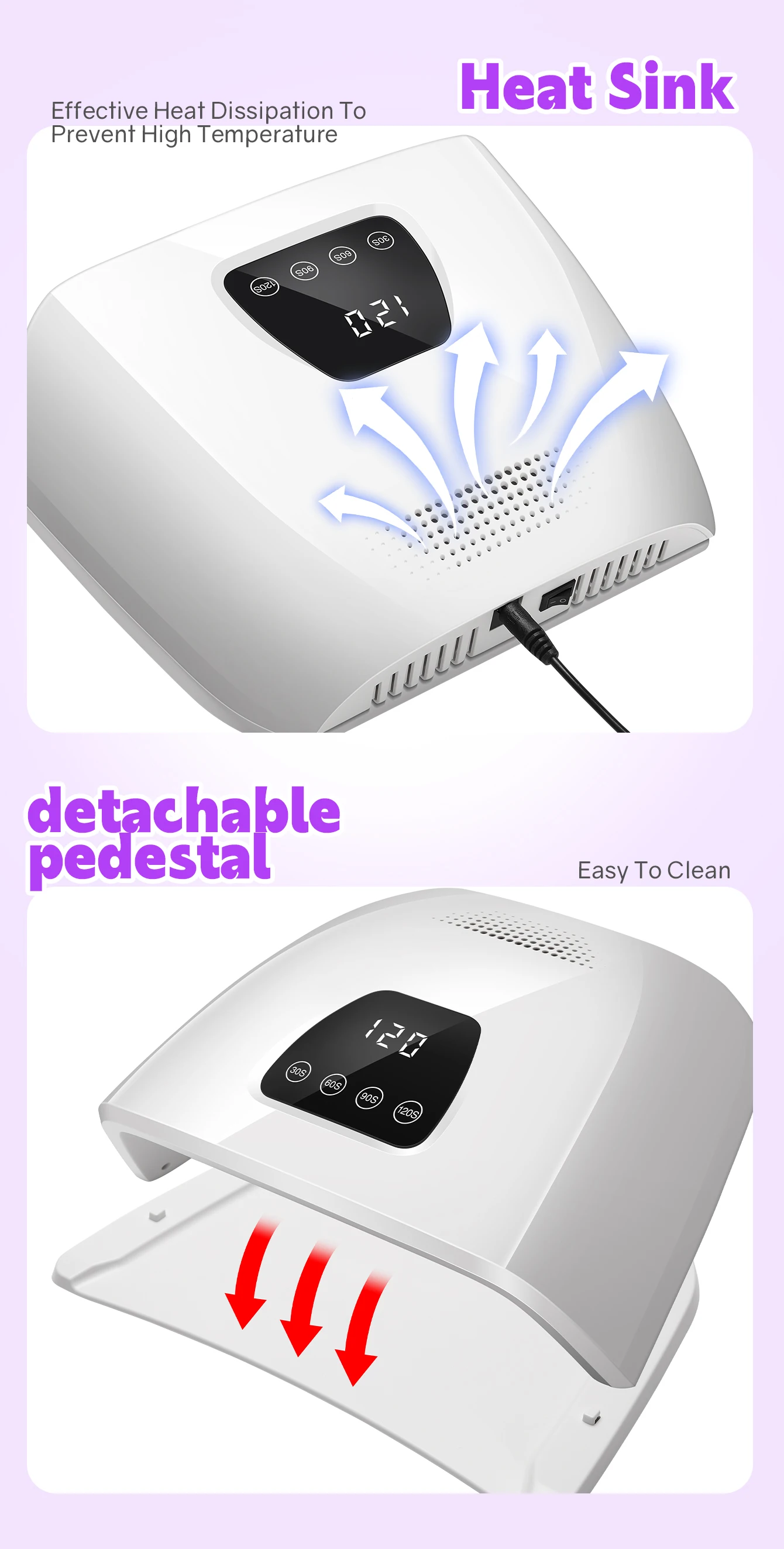【Over-temperature Protection & Smart Senor】This nail dryer could be automatic sensing, hands in light on, hand out light off. When you put your hand into the manicure lamp, it will automatically select 120S. In the 120s mode, it has an intelligent over-temperature protection function to protect your delicate skin from blackening or burning.