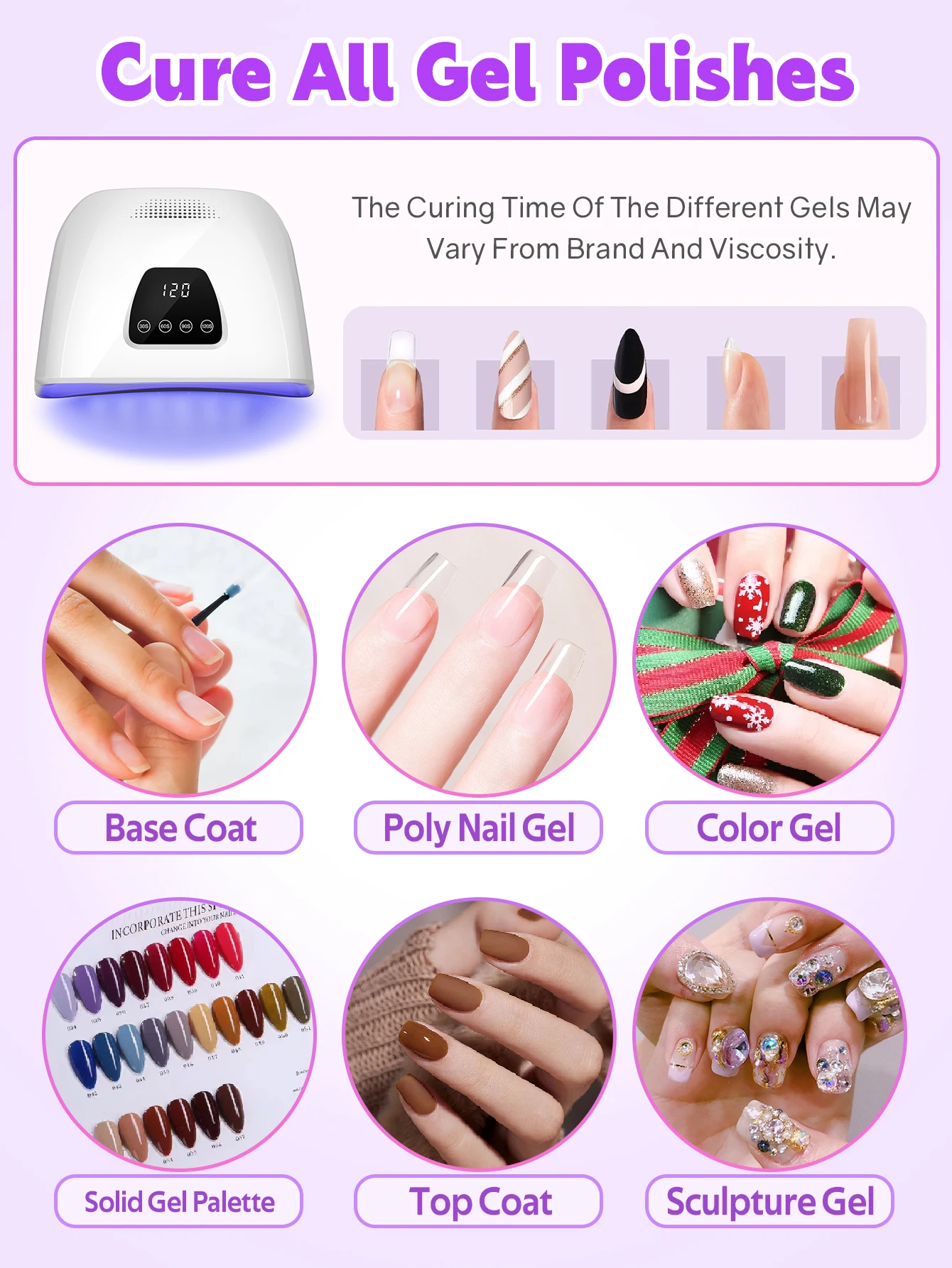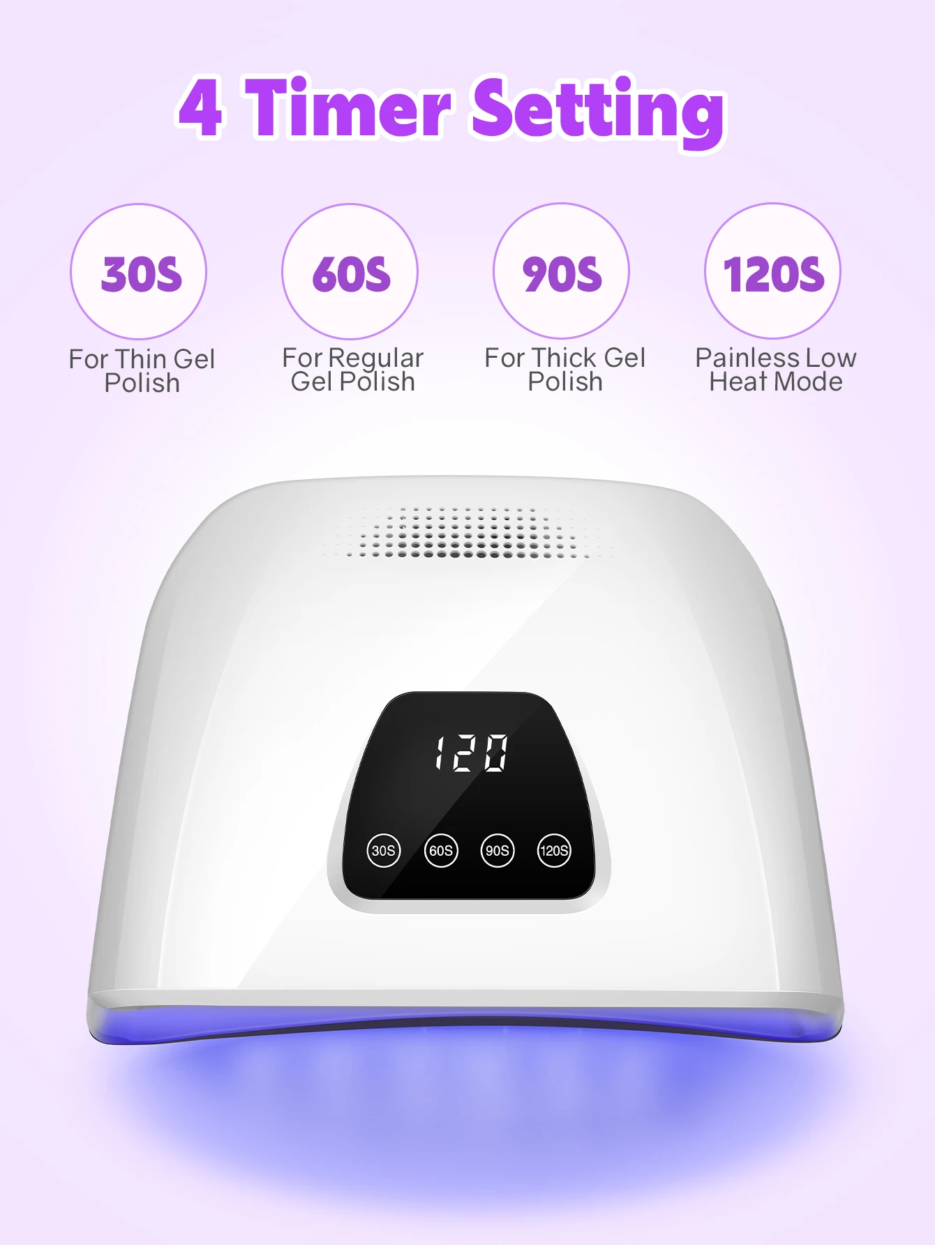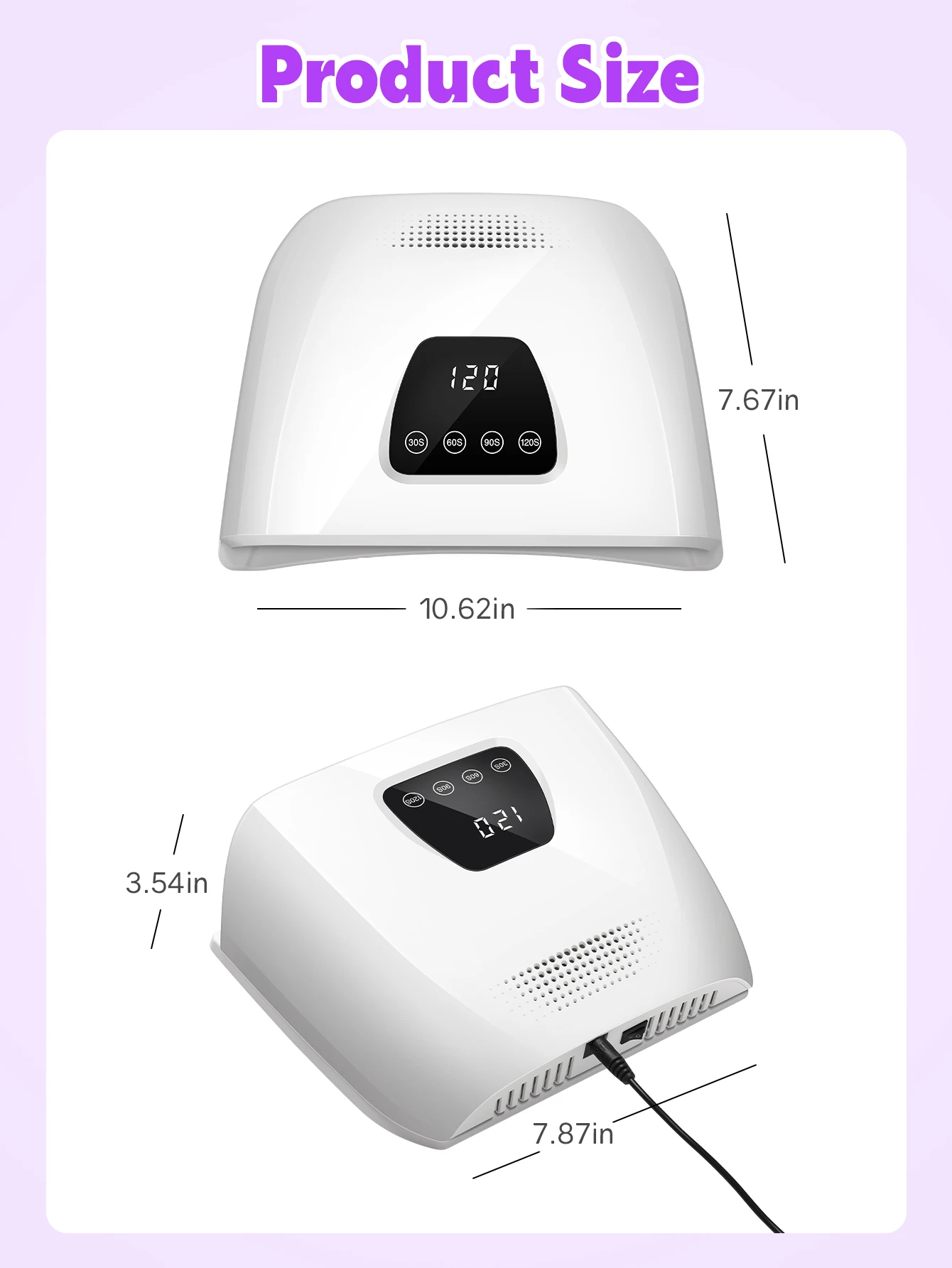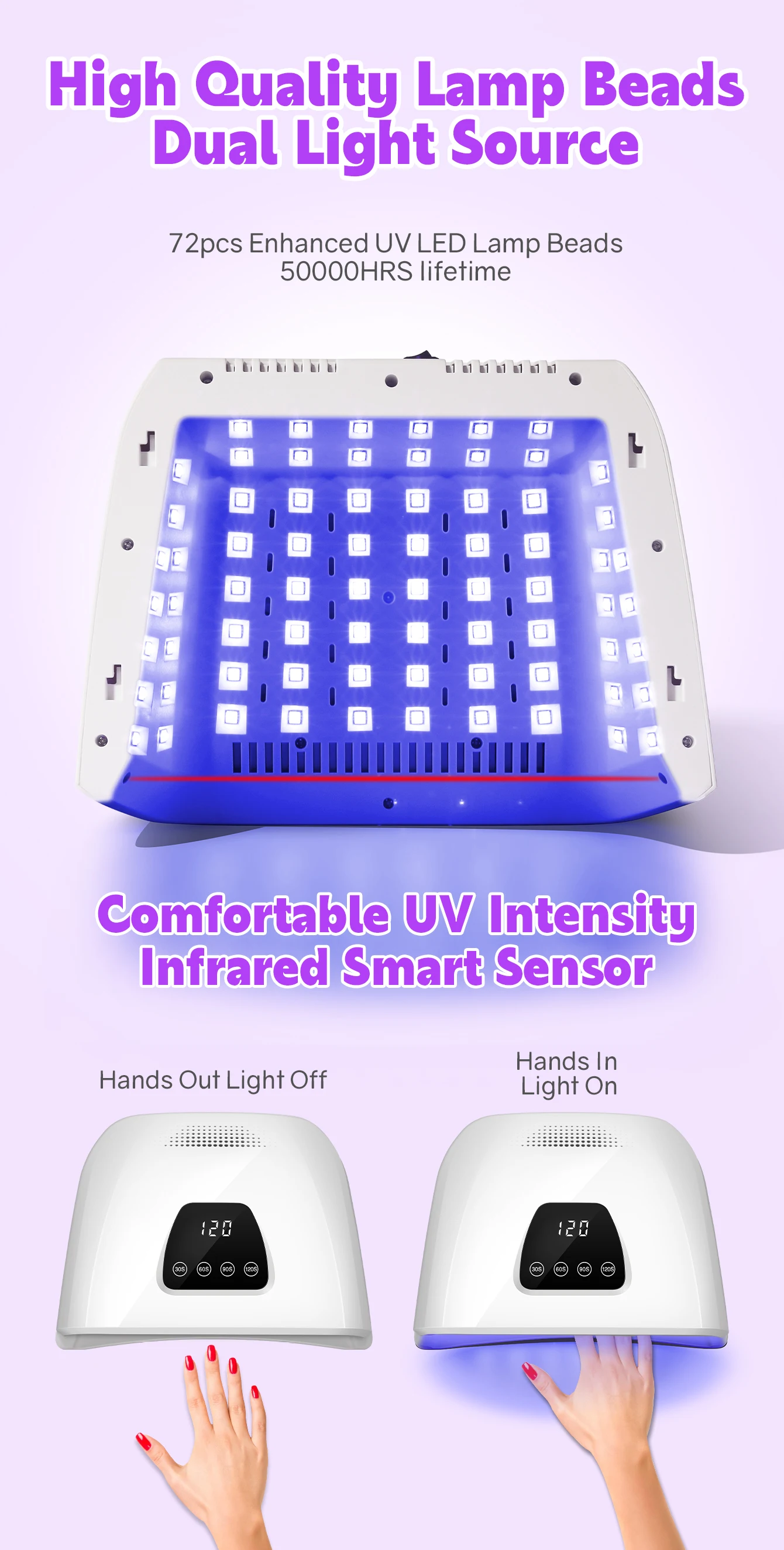 【High Power 72pcs Lamp Beads Fast Drying】 This UV nail lamp 3X faster than the other 80W gel lamp. 72pcs long-lasting lamp beads are evenly distributed, drying your nail polish in all directions.